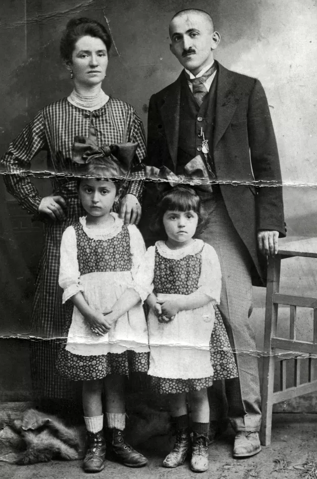 Here is my mother Rosa Atijas and my father, Leon Altarac; officially Juda. My sister Lea and me standing in front of them.