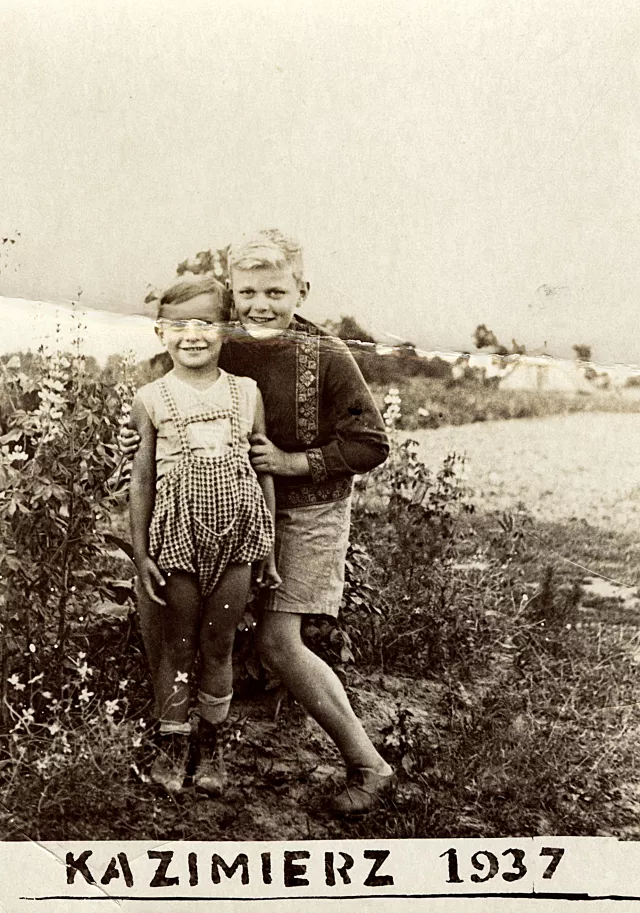 This was in Kazimierz, 1937. This is me and my brother Borus. My brother Borus was born in 1932. Borus derives from Ber - Dov in Hebrew, which means a bear. Now he uses also his Polish name Wladek, or Wladzio - Wladyslaw.