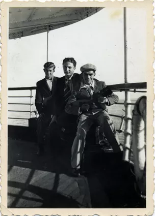 I left for Paris after graduating from the Engineering Faculty. The two friends that are with me were younger than me. The one in the middle was the son of a professor, he also became a doctor. The slender guy behind me had graduated from Galatasaray highschool, he was going to France to further his education. His mother had asked me to look after his son. After Greece, the ship went through rough seas, the waves took the ladder used for descending from the ship, the funnel of the ship was broken, such a storm.. We three slept in the same room. At one time I woke up, he is not there, I saw the boat is going one way one minute and the other way the next. I went out at midnight, maybe toward dawn, to look for him. I saw someone continually throwing up to the sea at the edge of the boat. I went and said, what are you doing, you are going to fall to the sea. And he says, “let me fall and be done with this”..