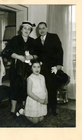 This photograph was taken in the house of my sister-in-law Ketty, before the wedding of my brother-in-law. My daughter was 4 years old then. I have a fur stole on in this picture and a hat.