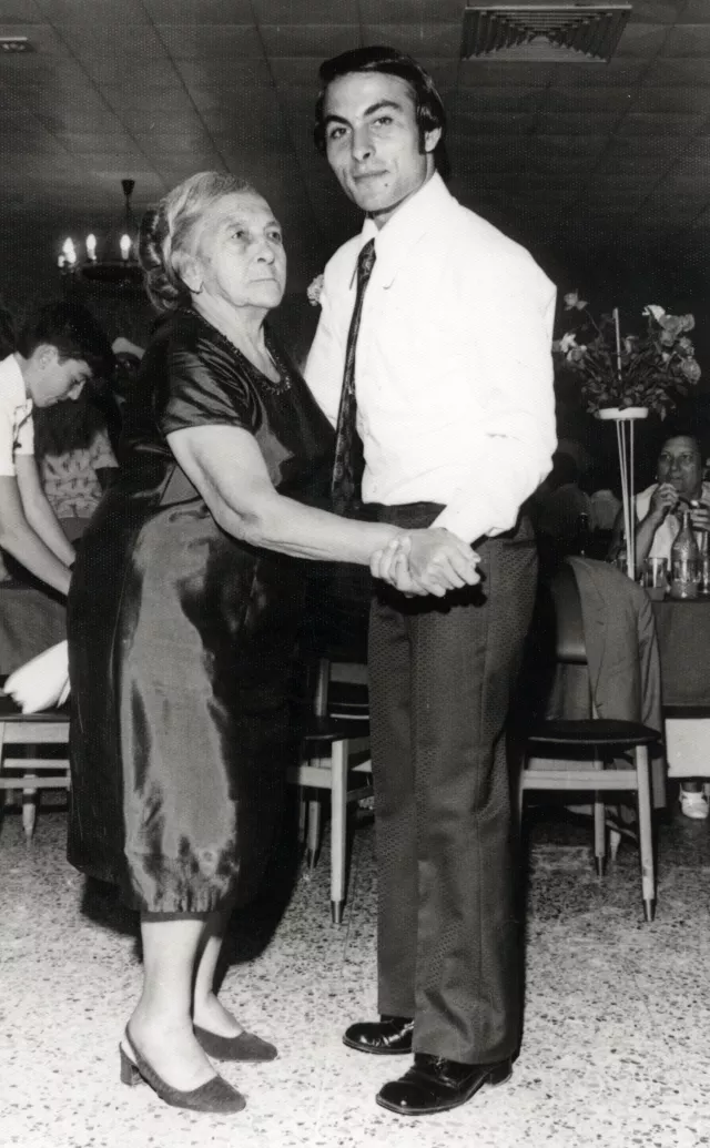 The photo was taken when my sister's younger son married. The photo shows my mother Iafa Beniamin Kohen, with her grandson Beniamin Revah, the child of my sister Milka Revah as a bridegroom. This picture was taken in the 1970s in Tel Aviv.