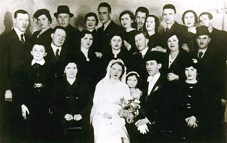 This is how a wedding looked a long time ago in a not so well-to-do family. One of my mother's sister's daughter got married, but which sister it was, I don't know. We didn't really get to see my paternal grandparents, because we didn't have money for travel. Once we went, all three of us kids, to a wedding, and it was really good, because there was a big garden. And there was an oven, and since I was the guest, I got to sleep on the top of the oven. It was very interesting. I got clothes then, that was a rare thing, to get clothes for a wedding. And I was very happy. It was my aunt Libi's wedding. She ended up in Auschwitz, too. They lived in Munkacs [Mukaceve], they took them away from there. It was a proper wedding, she had on a pretty white dress. When I went out the gate of the temple, then they threw confetti. I loved it so much, I was about five or six. There was good food then, so we partied well. But my mother always said: you have to behave! Well we had to, you couldn't horse around there.