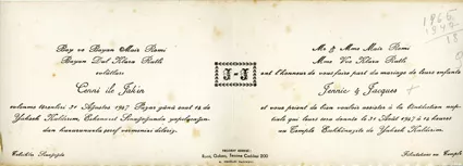 This is our wedding invitation in 1947, August 31st. We were married in the Ashkenazi synagogue in Yuksek kaldirim.