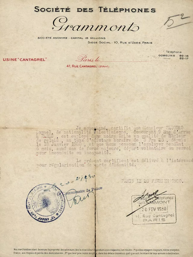 This is a reference from the Society of Paris Telephone Operators, where my father Samuil Sasonko worked in 1930.