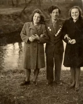My future wife Dalya Baykuyte is to the left, I am in the center, and to the right is my wife's friend. The picture was taken during our walk in Plunge in 1949.