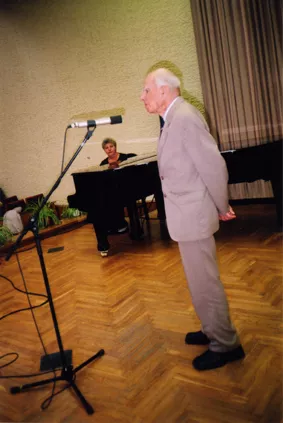This is I holding a speech before representatives of city public of Shauliai during celebrating 60th anniversary of clearing Shauliai from fascists. Siauliai, 2004.