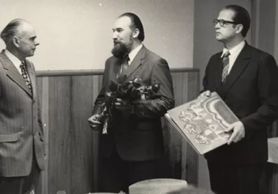 This is I on the left and my employees on a public health service during my celebrating my 70's jubilee. Siauliai, 1986.