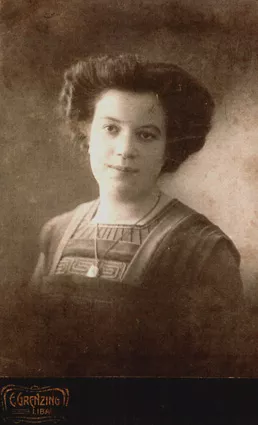 This is my mama Yelena Tets (nee Shreiberg). This photograph was taken, when Mama and her fiance, my father, went to visit his parents in Liepaja. Photographer E.Grenzing. This photo was taken in 1911.