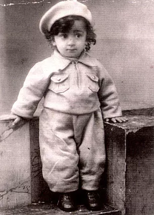 My husband's nephew Mosia, the son of his stepbrother on his father's side Moishe Freidkin. This photo was made in Bessarabia where Moishe's family lived before this area was annexed to the USSR. This photograph is signed: 'Mosik the Little one, sends this photo to aunt Yelizaveta and uncle Petia and Mishen'ka, 1939, Soviet Bessarabia.