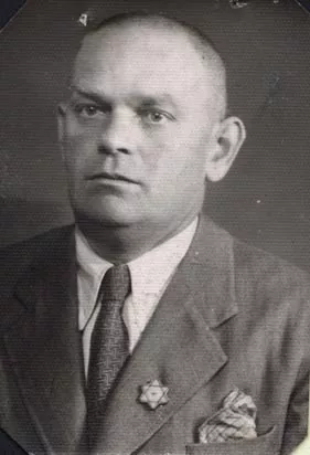 This is my father Yosif Fridman wearing the disgraceful yellow star. The picture was taken shortly before we moved to Asenovgrad. As a matter of fact, Dad was not sent to a forced labor camp, because of his advanced age and old Jews were not sent to such camps then. Besides, he was lame and he didn't have Bulgarian citizenship but the so-called Nansen's citizenship. Which meant - he had certain civil rights, but he was a citizen of the USSR. This was the main reason he emigrated almost immediately after 9th September 1944 [the day of the communist takeover in Bulgaria], because the Nansen's citizenship was canceled as such and he was deprived of all civil rights, although he was married to a Bulgarian Jew.