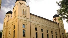 Since the end of World War II, Jewish communal activities have been centered in the Ashkenazic synagogue, a grand, Moorish style temple with four massive corner towers that was built in 1902 on the bank of the Miljacka River. It was converted in the 1960s to include community offices and function rooms as well as a sanctuary. In the process, the grandiose original sanctuary was divided horizontally into two levels, and today, the present prayer hall, still decorated with elaborate arabesques and colorful geometric patterns, occupies just the top half of the original space.