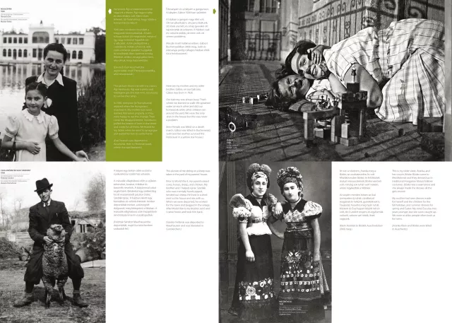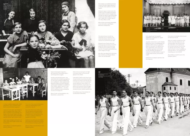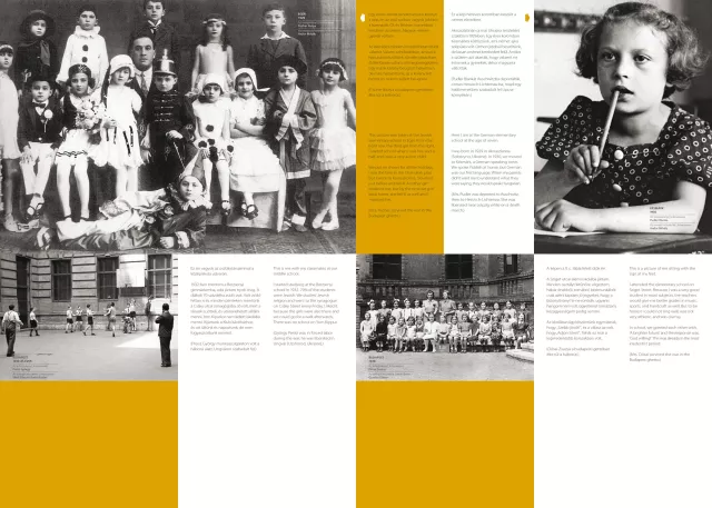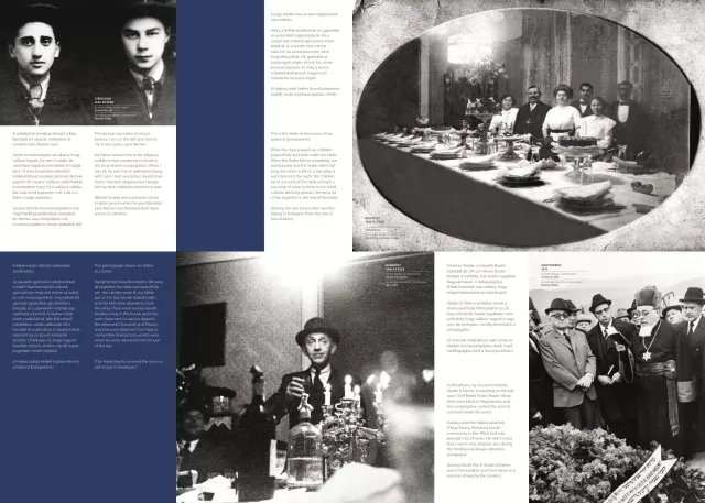 The exhibition consists of nine free-standing panels, each three meters long and two and a half meters tall. All images are digitally printed on both sides of the panels. Each panel focuses on a specific theme—such as school, religious life, vacation, or work—offering a vivid picture of the everyday life of Hungarian Jews in the 20th century.