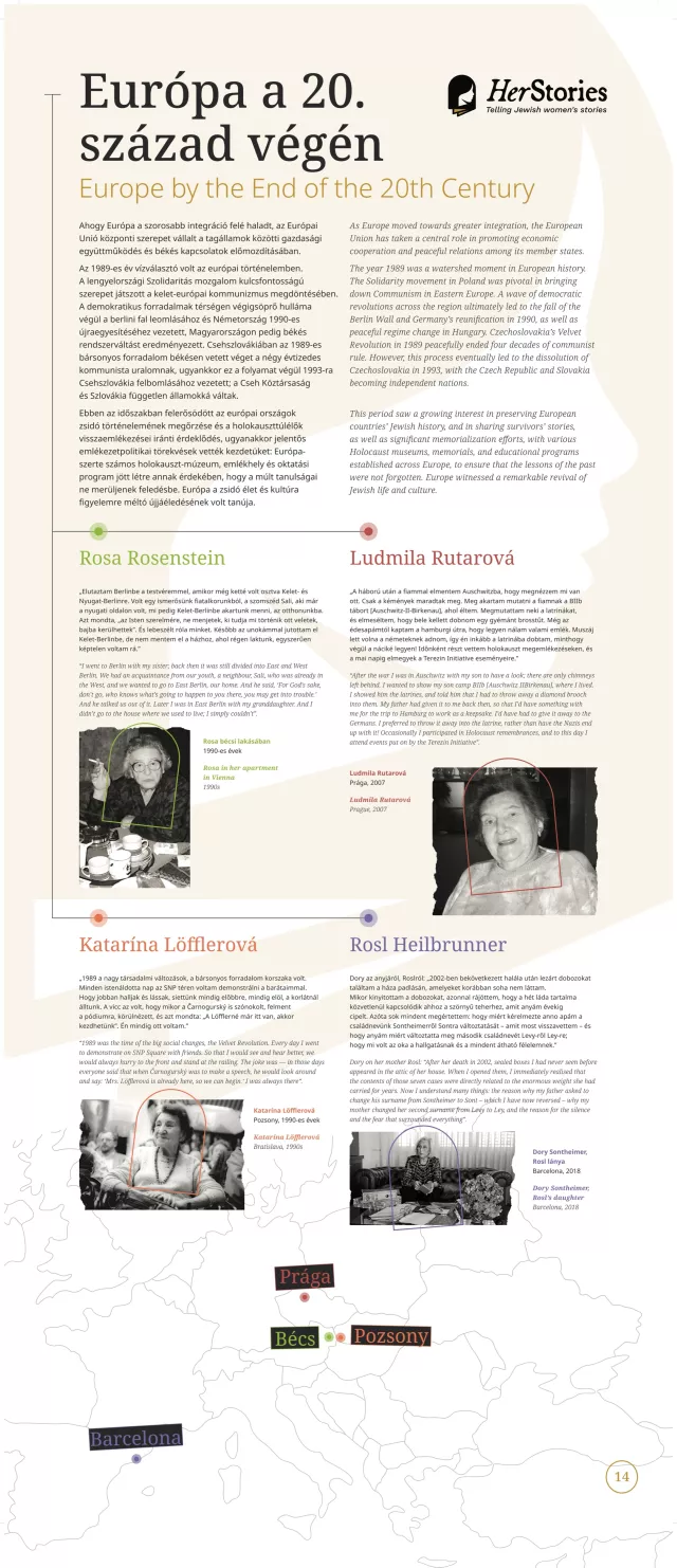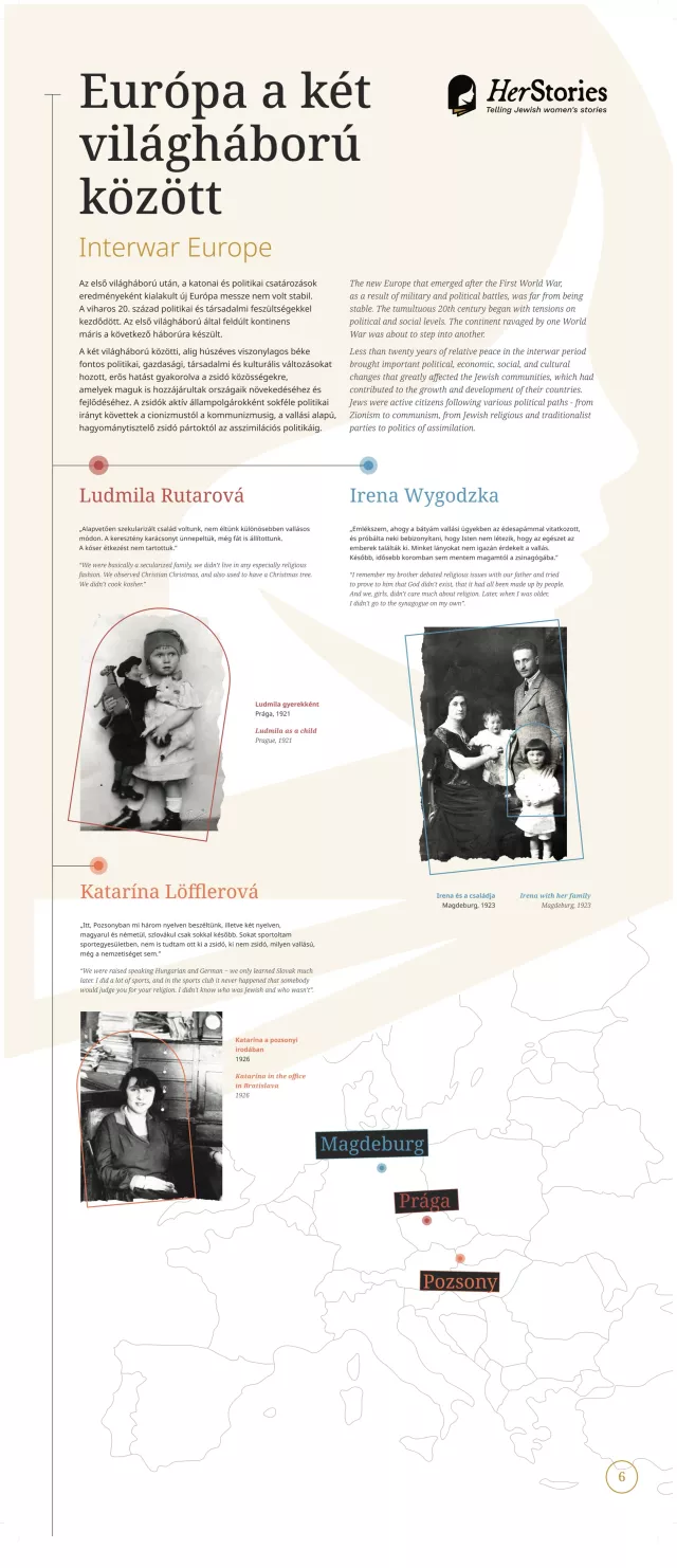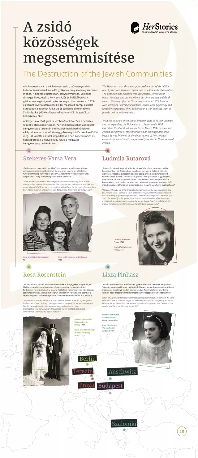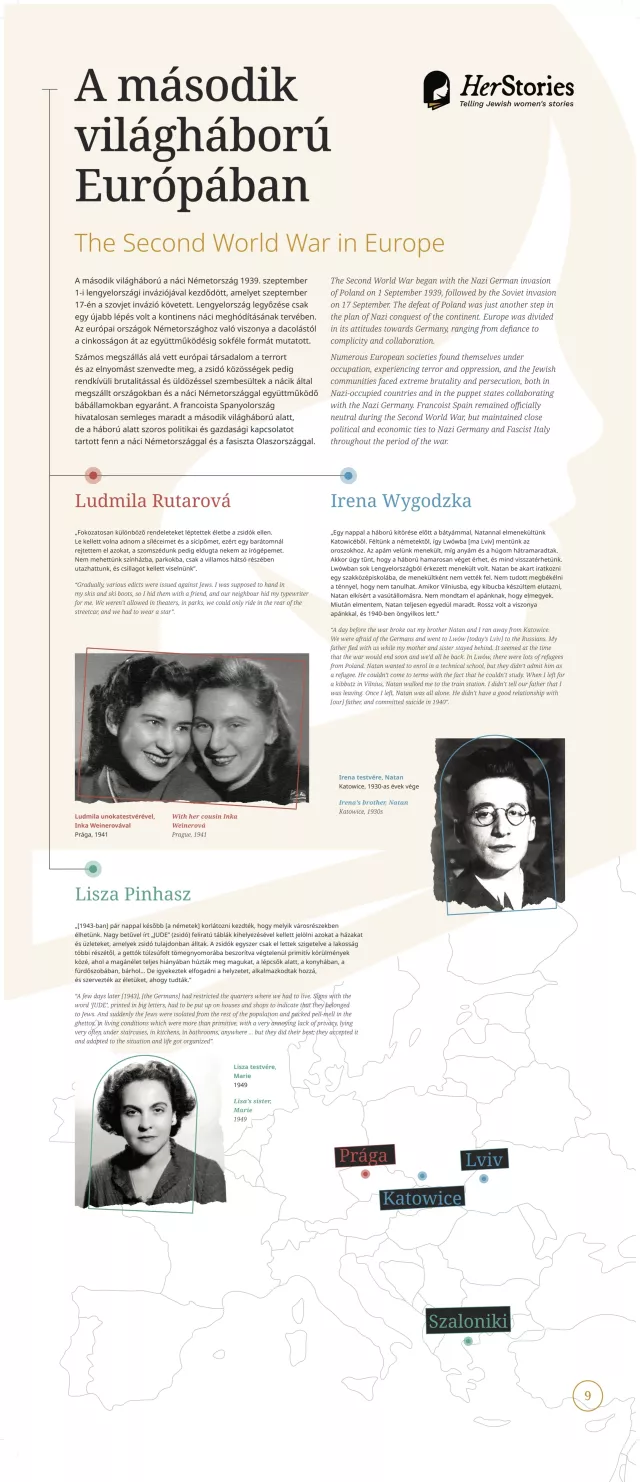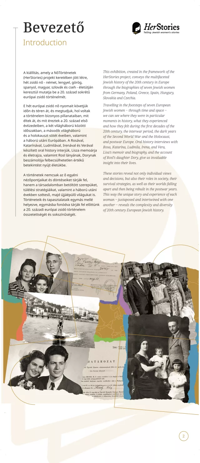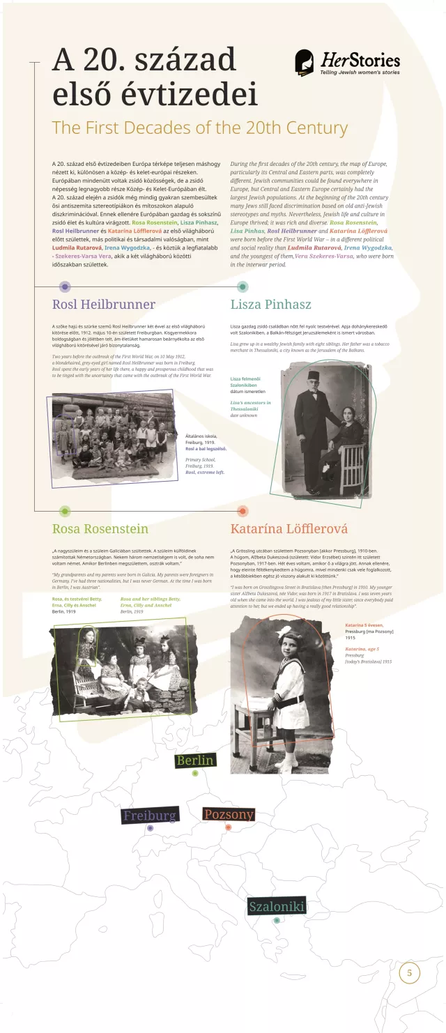 A kiállítás egy-egy német, lengyel, görög, spanyol, magyar, szlovák, illetve cseh nő életútján keresztül mutatja be a 20. század sokszínű európai zsidó történelmét.