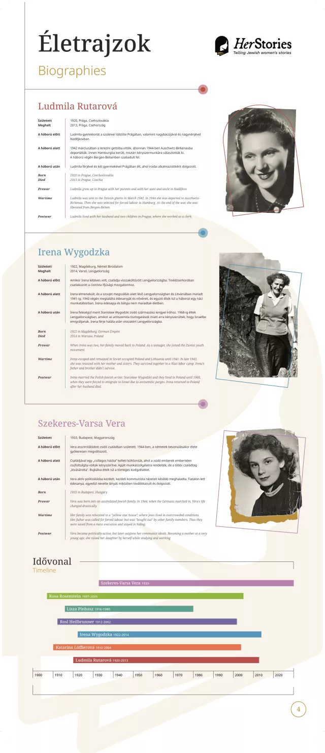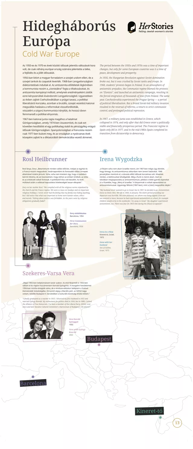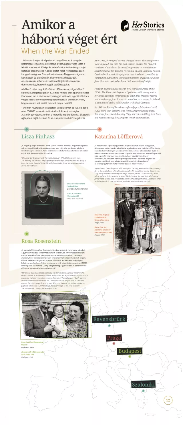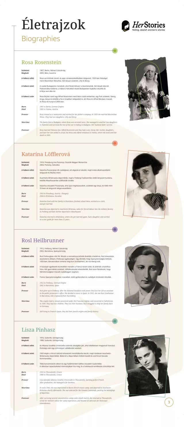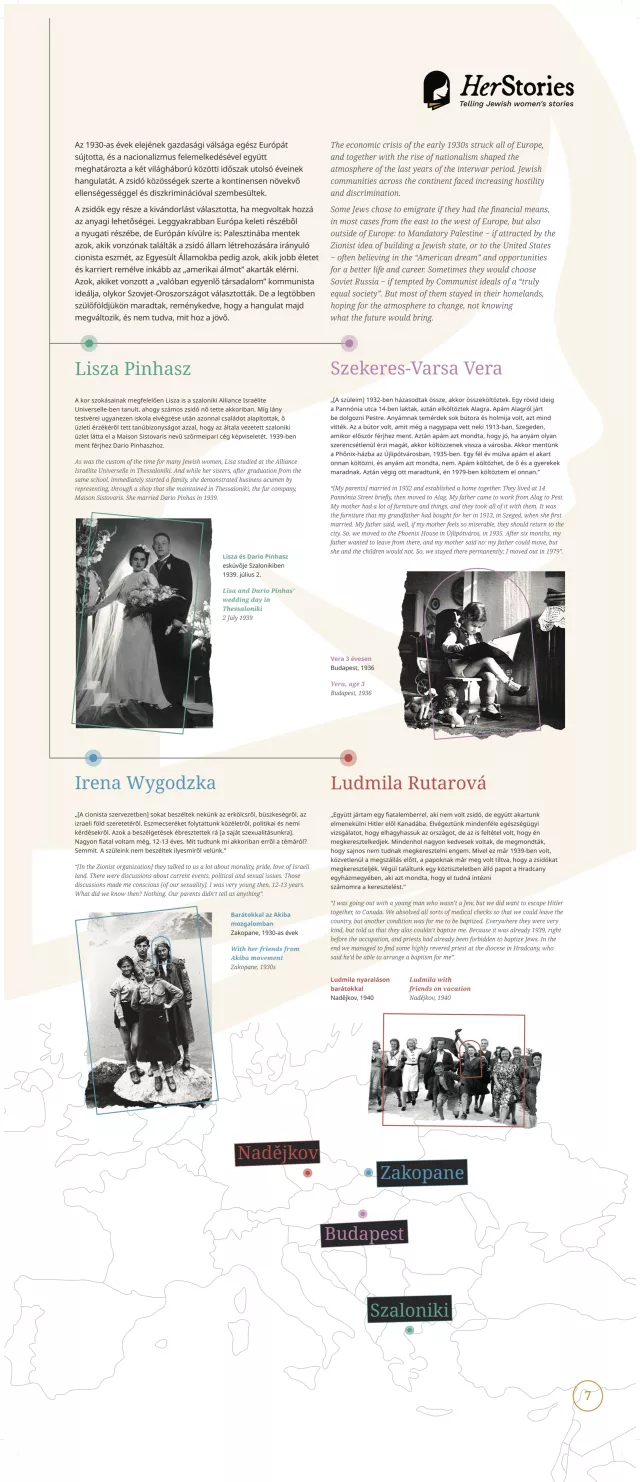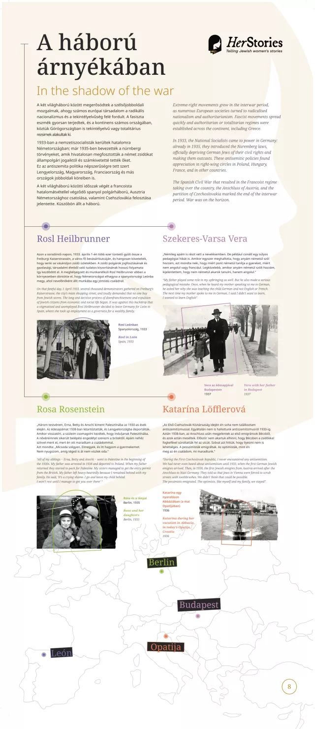 A kiállítás egy-egy német, lengyel, görög, spanyol, magyar, szlovák, illetve cseh nő életútján keresztül mutatja be a 20. század sokszínű európai zsidó történelmét.