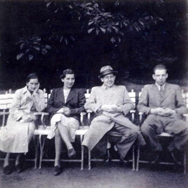 Ez a kép az egri érsekkertben készült, már gimnazista koromban, tizenhat évesen. Balról jobbra: Klein Júlia, aki eggyel lejjebb járt, mint én, aztán én, aztán Löw Gyuri, a barátnőm bátyja, aztán Ehrenfeld Andris, aki eggyel feljebb járt, mint én. A jobb szélsőre nem emlékszem.
