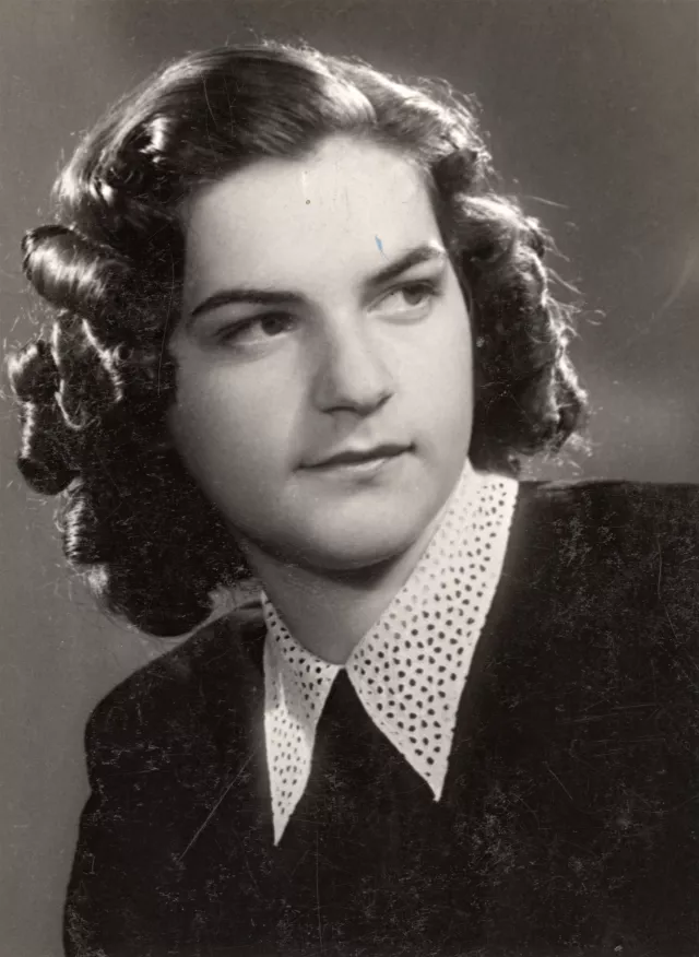 Ez én vagyok, 1949-ben. A kép az első házassági évfordulónkra készült, valahol a Körúton egy fényképésznél.