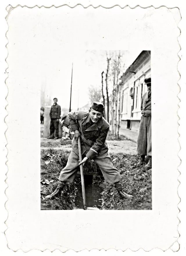 1941 elején Ikladon munkaszolgálatosként árkot ástunk. Azok, akik a katonaságtól kerültek át, munkaszolgálatosként is az egyenruhájukban folytatták, csak a fegyvernemi jelzést, nálam pl. a gépkocsizók barna paroliját kellett eltávolítani. Akiket eleve munkaszolgálatosnak hívtak be, azok főleg a Felvidéken zsákmányolt csehszlovák egyenruhákba öltöztek, magyar katonasapkával.