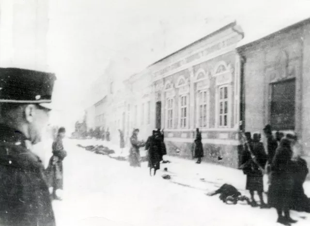 Ezt a képet az újvidéki vajdasági múzeumban találtam, és lemásoltam. A kép 1942. január huszonharmadikán készült a Mileticeva utcán, ahol laktunk, és ahol a családomat aznap kiirtották. Ez az újvidéki vérengzés harmadik napja volt.