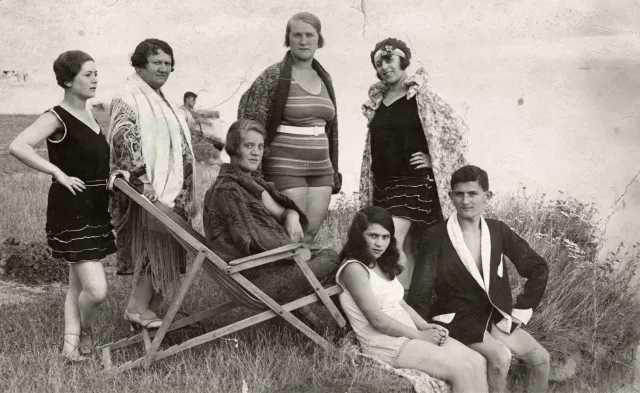 Ez a kép Balatonkenesén készült 1925 körül. A balról az első vagyok én. Mellettem áll az sógornőm nagynénje. Akit még felismerek, az a nővérem Sári, ő a jobboldalon áll elsőként. Előtte ülő fekete hajú lány Edit, a mellette levő fiú a testvére, de a nevét már nem tudom. Ők a nagynéni gyerekei voltak. Ők hívtak meg minket hozzájuk két hétre. Akkoriban nagy divat volt, hogy egy hónapra kivettek egy balatoni házat. Akkor a nők nem dolgoztak. A férfiak pedig a “bikavonattal “jöttek le hétvégenként.
