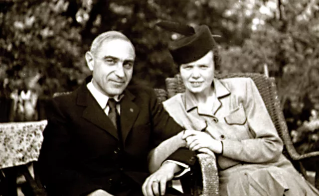 Ez Neuwelt Aranka a férjével, Bársony Gyulával. Ez a kép még egészen a házasság elején készülhetett, az 1930-as évek vége felé Pesten.