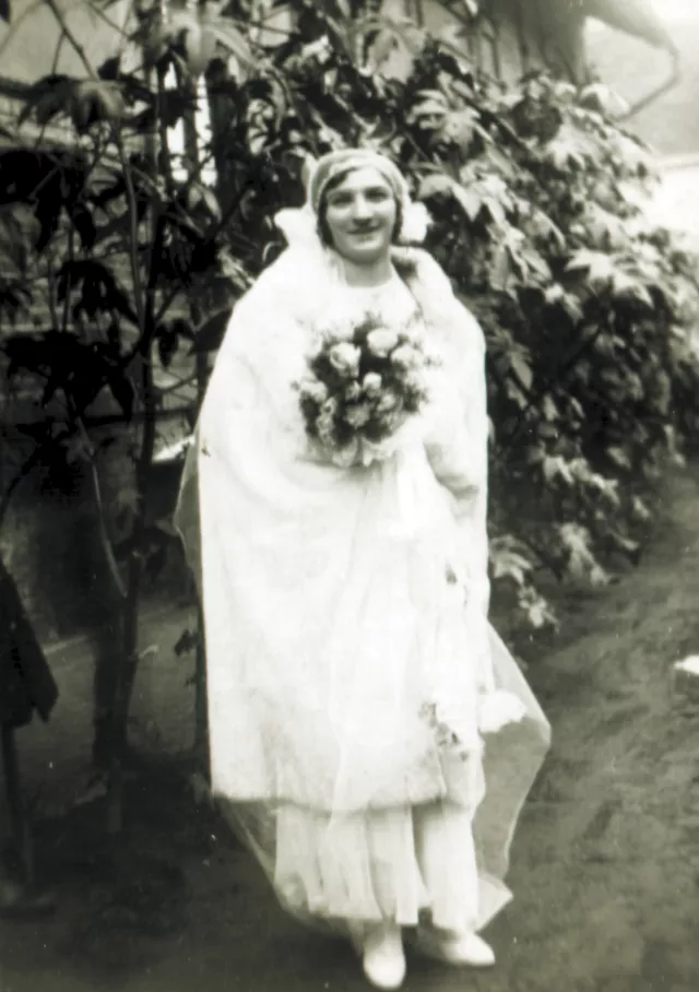 Ez a nővérem, Leimseder Gitta esküvői képe. Valamikor az 1930-as években ment férjhez. Az esküvőt a házunkban tartották és ott készült ez a kép is.