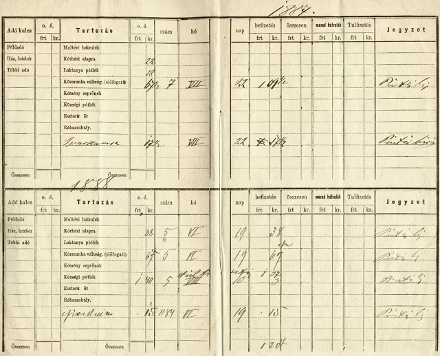 Ez a dédapám, Berger Mátyás adókönyvecskéje, amiből kitűnik, hogy 1885 és 1890 között milyen adókat fizetett, és mennyit.