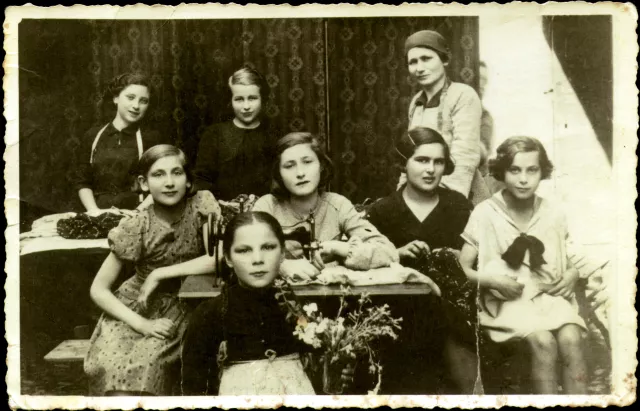 Ezen a képen az osztálytársaimmal vagyok lefényképezve. Én a második sorban jobbról a második vagyok. A kép 1934-ben készült, Kolozsváron. A felnőtt, aki hátul áll, a tanító nénink volt, ha jól emlékszem. Ez a kép még a zsidó elemi iskolában készült. A tanító néni feje azért is van bekötve, mert ő egy nagyon vallásos néni volt.