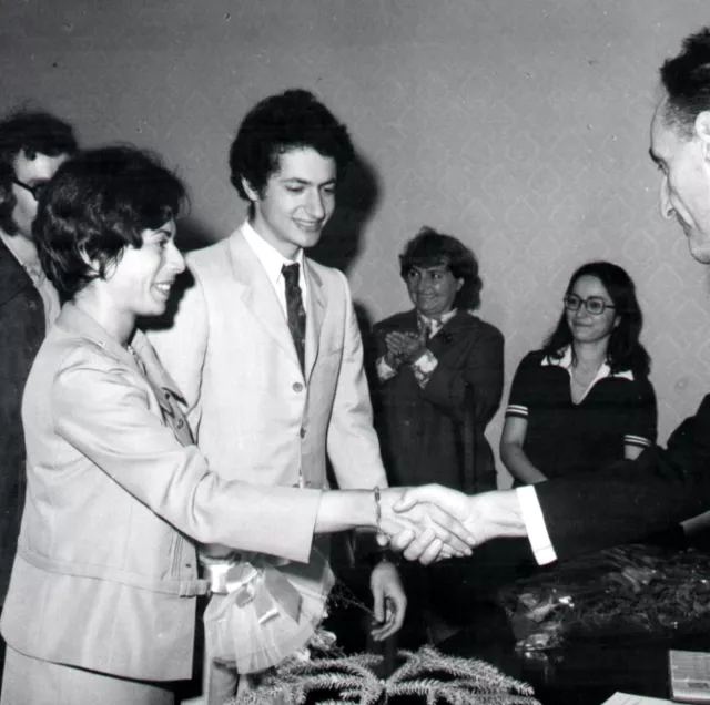Ez a kép Vlada fiam esküvőjén készült 1968-ban Szabadkán. Vladának polgári esküvője volt. Egyházi esküvőt nem tudtunk neki szervezni. A kommunista Jugoszláviában ez szinte lehetetlen volt. Vladislav fogorvos, akárcsak én, Svájcban él a feleségével és a lányával. A fiam egy bunyevácot vett feleségül. [Bunyevácok - vitatott eredetű horvát népcsoport, tagjai a 15. században, a törökök megjelenése után kerültek elvándorlással vagy telepítéssel a horvát-bosnyák határon fekvő Dinári-Alpok környékéről későbbi lakóhelyeikre, Horvátországba és Észak-Bácskába. Részben földműveléssel foglalkoztak, de tekintélyes számú városlakó népességük is volt. A magyarországi horvátság legpolgárosultabb elemeként tartották számon őket. - A szerk.] Otthon megtartják a zsidó és a katolikus ünnepeket is. Tudom, hogy minden nagyünnepet megtartanak, Vlada böjtöl, és barátainak a többsége zsidó. Annak ellenére, hogy keresztény, nagyon szeretjük a menyünket. A vallás nekünk nem fontos. Vlada és a felesége a kereszténységre és a judaizmusra is megtanították a gyereküket. Amikor Vlada elvégezte a fogorvosi iskolát, egy szabadkai klinikán kezdett el dolgozni. A főklinikán kapott munkát, ahol a főnökök készítették a fogsorokat, a többiek kezeltek és fogat húztak. Ez nagyon zavarta, és elkezdett utánanézni annak a lehetőségnek, hogy elhagyja az országot. Az első ajánlatot Svájcból kapta, és el is ment. Szerencséje volt ott, és ma nagyon jól él.