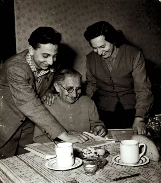 Itt az anyai nagynéném, Breiner Ilona, anyai nagyamamám, Breiner Kálmánné és én vagyok. A kép Budapesten készült az 1950-es években. Ilona épp a nyereménykötvényét mutatja. 100 000 forintot nyert [lásd: békekölcsön], ami rengeteg pénz volt akkoriban, és emlékszem, hogy 15 000 forintot adott a koreai gyerekeknek, a többit pedig szétosztotta a családban. [A Koreai-félsziget északi részén 1948-ban alakult Koreai Népi Demokratikus Köztársaság 1950-ben háborút indított a félsziget teljes birtokba vételéért a Koreai Köztársaság ellen. Az északiakat Kina és a szocialista országok támogatták, a délieket az ENSZ-zászló alatt harcoló amerikaiak és 15 további ország. A háborúnak fegyverszüneti egyezmény vetett véget 1953-ban. -- A szerk.] Mi is kaptunk a nyereményből, és emlékszem, hogy bútort vettünk a pénzből.