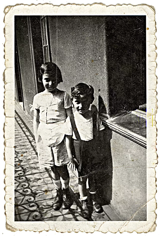 Ezen a képen az öcsémmel vagyok. Talán olyan nyolc éves lehettem, az öcsém pedig négy. Ez kép a Paulay Ede utca 43-ban készült, ott lakott anyám testvére, Aranka nagynéném és a két lánya, Magda és Éva.
