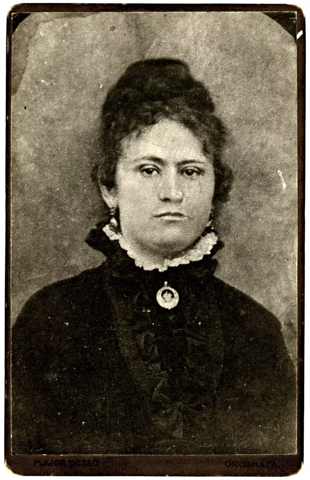Anyai nagyanyám, Süsz Katalin. A kép az 1870-es években készülhetett. Az anyjáról, Schwartz Júliától nem tudok semmit. Apja, Süss Jakab, egy abonyi szabómester volt. Amikor fiatal volt, akkor valcolt, és bejárta a fél világot. Nagyon szép ruhákat varrt. Többet nem tudok. És még egyet. Schwartz Júlia a harmadik felesége volt Süss Jakabnak. Két feleség meghalt, és gyerek nem volt. Aztán ebből a házasságból négy gyerek született. Nagyanyámnak, Süss Katalinnak két fiútestvére volt. Az egyik volt a Józsi bácsi, akit egyszer láttam kisgyerek koromban, de semmit nem tudok róla. Aztán volt egy öccse, Géza, aki akkor született, amikor ő már férjhez ment. Abonyira magyarosította a nevét, Abonyi Géza, és valami vállalatnál dolgozott, jól keresett. Két lánya volt, akiket elvittek. Aztán volt a nagyanyámnak még két lánytestvére is, az egyik volt a Rozi néni. Az egy olyan bolondos nő volt, nem vette senki komolyan. Egyszer láttam. A másiknak volt egy fia, aki patikus lett, a fogaskerekűvel szembe lévő patikát vette meg.
