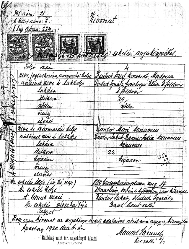 Az apostagi izr. Hitközség esketési anyakönyvéből