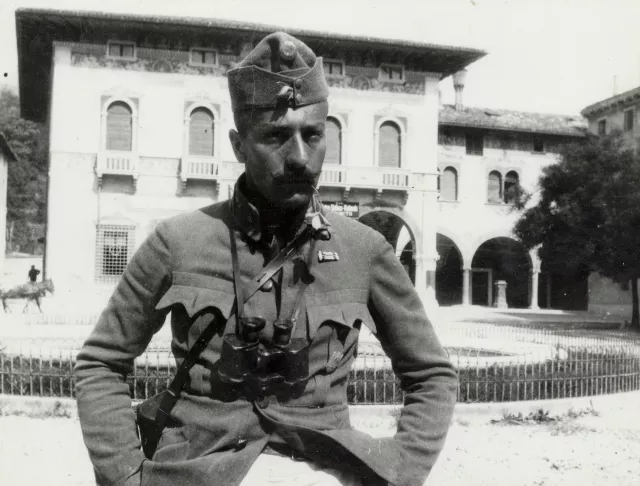 A kép apámat ábrázolja az első világháborúban az olasz fronton, már hadnagyként. Valahol Trento környékén voltak.