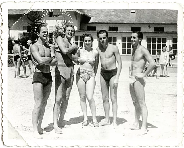 Ez 1947 augusztusa, Hévízfürdő. Középen állok én. A fiúk nevére nem emlékszem pontosan. Ez nagyon szép nyár volt, amilyen szép egy tizenhat éves lánynak lehet, ha körülrajongják, meg udvarolnak neki. Rendszeresen nyaraltunk. A felszabadulás után voltunk nyaralni Hévízen, meg mentünk Balatonlellére.