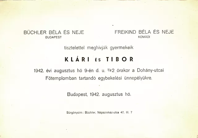 Dr. Forgács Tibor és felesége esküvői meghívója