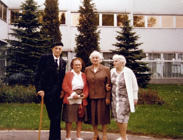 Érdekes csoportkép körülbelül 1968-ból. A kép főszereplője egy francia orvos, aki a lágerben volt az életmentő orvosunk, doktor Lafitte. Az egy több mint húsz évvel későbbi történet, hogy megtudtam ennek az orvosnak a nevét meg a címét. Írtam neki, és el is jött Budapestre 1968-ban. Az egyik volt politikai fogoly el tudta intézni, hogy meghívjuk. Itt volt nálunk, kapott magyar kitüntetést. Akkor már kilencven éven fölül volt, hamarosan meghalt. De nagyon szép kapcsolat alakult ki közöttünk.