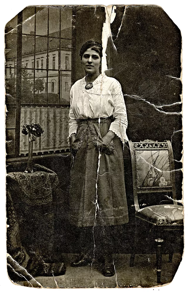 Az édesanyámról [F. Imréné, szül. Klein Magdolna] készült ez a kép 1917-ben, akkor küldte Szegedre a fivérének, Ernőnek, aki megsebesült a fronton.