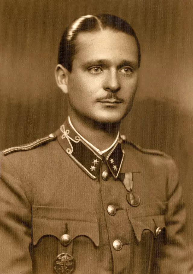 Egyetem után vonult be katonának, mert nem tudott elhelyezkedni. Pedig nem volt zsidó, de ő sem tudott elhelyezkedni. Repülő szeretett volna lenni, de az édesanyja a kapcsolataival kijárta, hogy nem lett repülő, mert félt, hogy lezuhan a fia. Így lett harckocsizó. Budapesten kapta a kiképzést. Ezen az egyenruhás fényképén látható, hogy nagyon hamar már nemcsak egyszerű önkéntes volt, hanem őrvezető, ha igaz, két csillagja volt. Akkor küldték ki a frontra, amikor már teljesen felesleges volt. Nevezetesen, harckocsizni a Kárpátokba! Jó katona volt. Egyszerűen a harckocsi érdekelte.