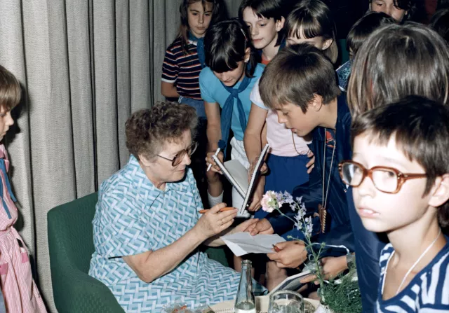 Fehér Klára iskolásokkal