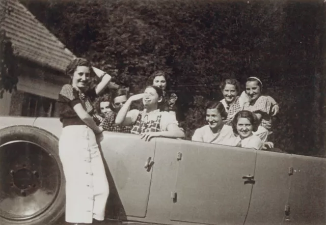 Ez a kép is egy osztálykiránduláson készült. A zárdával is jártunk kirándulni, minden évben volt osztálykirándulás. Nem tudom, kié az autó, mi csak fényképezkedtünk benne. Én az autóban ülők között jobbról a második vagyok.