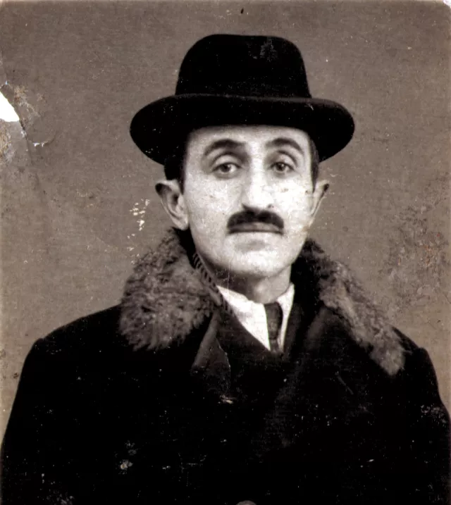 Apukám, Fogler Emánuel. Ez már az 1944-es évek környékén volt. A papának pajesza is volt, de ilyen rövid, pakumpaknak [Pakombart - pofaszakáll, oldalszakáll; német -- A szerk.] mondták. Razollal [Maró folyadék, amit borotválkozáshoz használtak régen. Az arcra kenve leszedi a szőrt, amit aztán le lehet törölni. A hagyomány szerint az ortodox zsidó férfiaknak szakálluk van, mivel sem késsel, sem pengével nem szabad az arcot érinteni. Azok az ortodoxok, akik mégis szerettek volna borotválkozni, a razollal kerülték meg a tiltást. -- A szerk.] borotválkozott. Hetente egyszer csinálták, főleg pénteken voltak megborotválva. Hajadonfőtt soha nem járt. Amikor az utcára ment, nem a kipa volt rajta, hanem kalap.