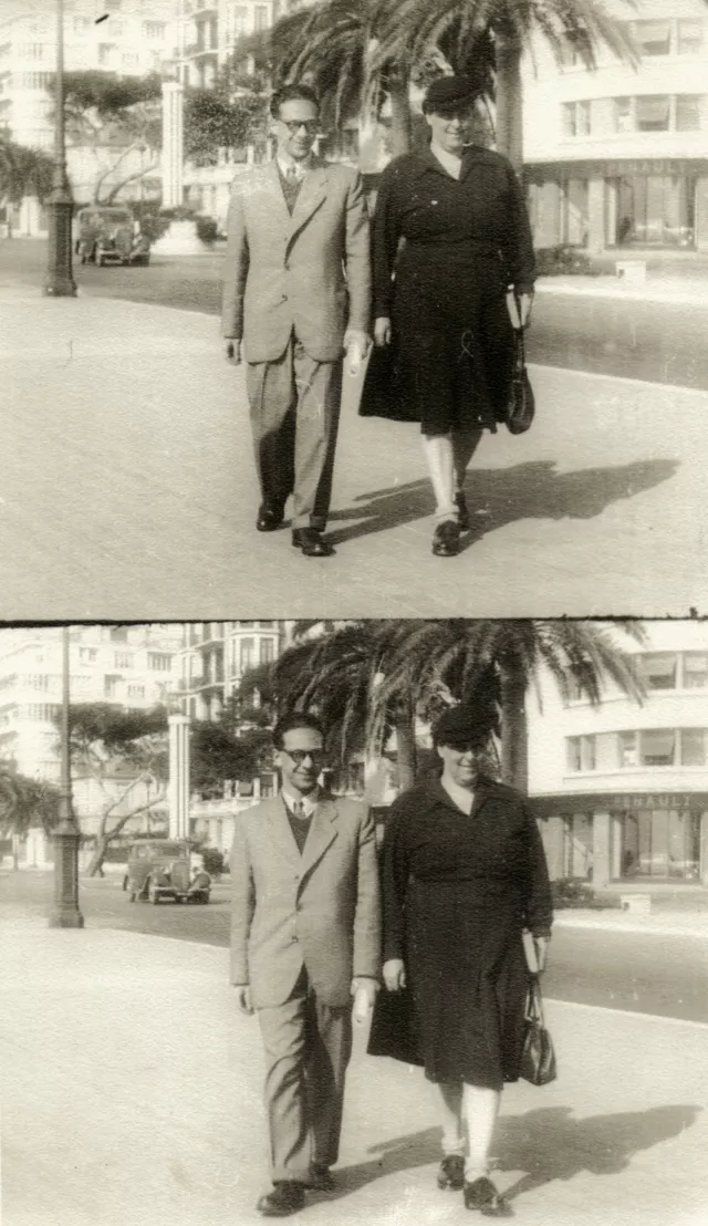 Ez Bandi bátyám és anyám testvére, Giza néni Cannes-ban. A kép 1948-ban készült. Bandi és Giza húsvéti nyaralásra mentek oda Párizsból, ahol akkor éltek, mert a nagynéném nagyon kíváncsi volt rá, és befizetett egy társasútra.