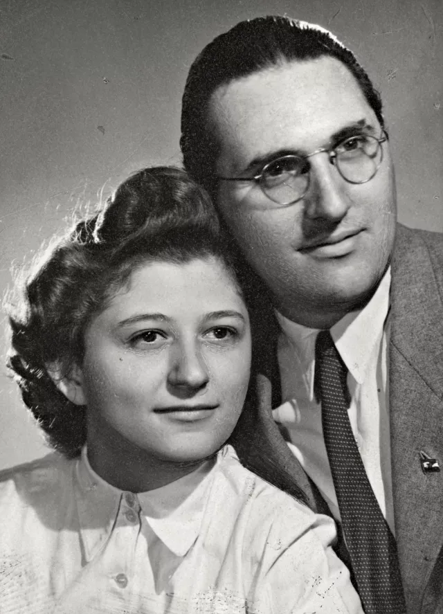 Ez én vagyok a férjemmel [Freud Géza] 1949-ben, Budapesten. Akkor házasodtunk össze.