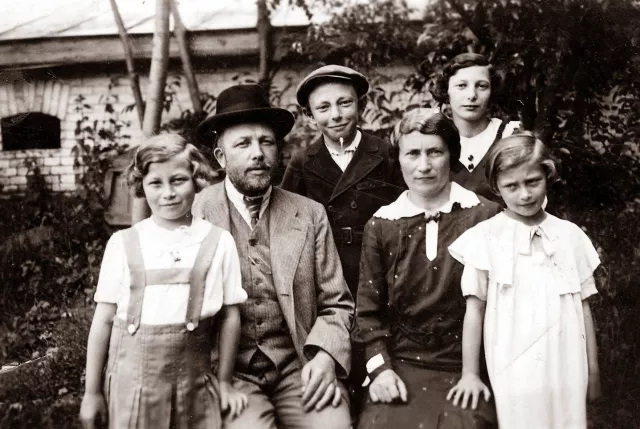 Ez egy családi fénykép. Minnyájan rajta vagyunk, a szüleim, a testvéreim és én. A kép a soltvadkerti házunk udvarán készült.