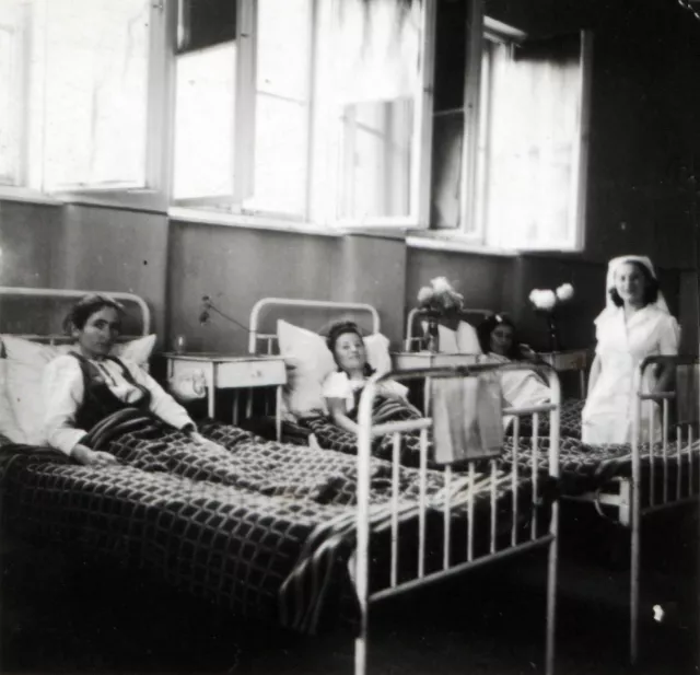 Ezen a képen a "Sebestyén Dávid és Neje" Zsidó Közkórház ápoltjai között vagyok lefényképezve, ahol asszisztensként dolgoztam 1940-től. A kórházat Sebestyén Dávid, anyai nagyapám fivére alapította, aki nagyon gazdag ember volt. Az orvosok mind zsidók voltak, de a segédszemélyzet -- a szakács, a takarítónők -- keresztények, az ápolónők között is néhányan. A zsidó orvosokat nem vették be az állami klinikákra, hozzánk jöttek. Ugyanúgy, a zsidó orvostanhallgatók is a Zsidó Kórházba jöttek gyakorlatra, nem fogadták be őket az állami kórházakba. A páciensek tekintetében nem volt megkülönböztetés, keresztényeket is elfogadtak. Az igazgató a nagybátyám unokájának a férje volt, azaz az igazgató felesége az unokatestvérem volt. De én nem árultam el ezt az igazgatónak, azt akartam, hogy a képességeim szerint értékeljenek, nem pedig a családi kapcsolataim alapján. Megvolt a büszkeségem. Később, évek múlva elárultam az igazgatónak, aki meglepődött, hogy nem éltem ezzel a családi kapcsolattal. És úgy dolgoztam, igyekeztem megfelelni a munkahely elvárásainak, tanultam és ez sikerült. Az egyik legjobb alkalmazottként tartottak számon.