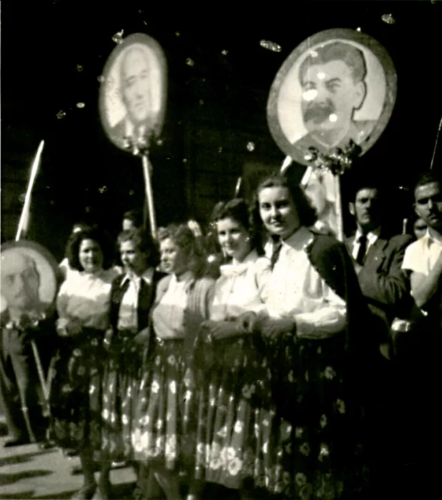 A nővérem, [Gáti] Éva ballagásán készült ez a fénykép, úgy az 1950-es évek elején, Egerben. Ő az első sorban áll, jobbról az első.