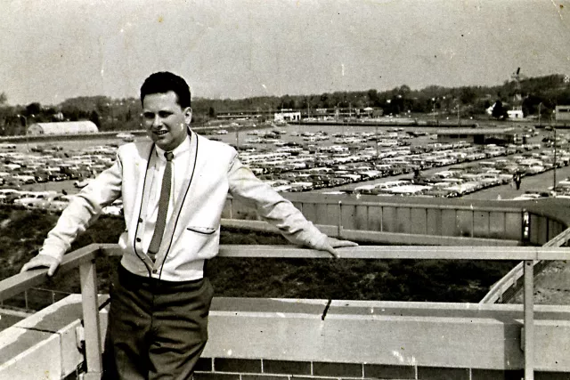 Ez a kép rólam készült, amikor kinn voltam Amerikában, körülbelül 1961-ben. Az egyik barátom, aki a munkatársam is volt, ő csinálta rólam. Mindig együtt mentünk kocsival kirándulni, és mert én imádtam a kocsikat, ezen a helyen, egy autókereskedés mellett fotózott le a barátom.