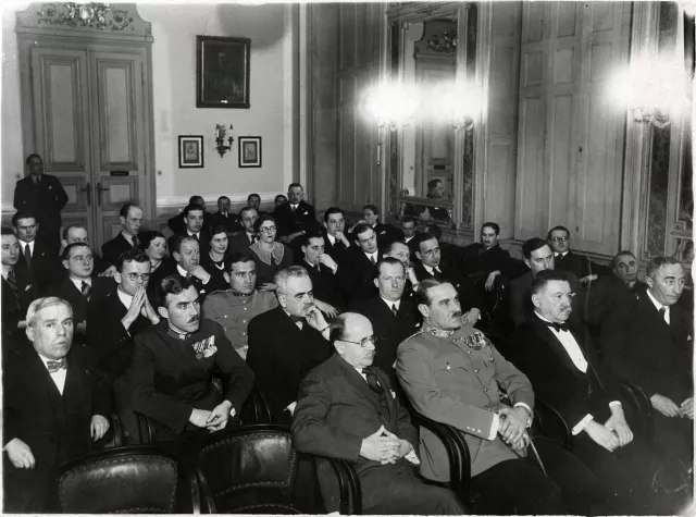 Ez apuka klubjának, a Hungária Vívóklubnak a húszéves évfordulója. Ez 1935-ben volt, akkor volt húsz éves a Hungária Vívóklub. Apuka volt a klub alelnöke. És itt a Dunay Berci bácsi, aki Európa-bajnok volt [Dunay Bertalan (1877--1961) -- kardvívó, tagja volt az 1912-es stockholmi olimpián győztes kardvívó csapatnak, 1920-ban magyar bajnokságot nyert, s többször ért el helyezést. Többször viselt tisztséget a Budapesti Budai Torna Egyletben (BBTE) és a Magyar Vívó Szövetségben. -- A szerk.]. Ezek az egyenruhások biztos MAC-osok voltak, mert az volt a keresztény klub [MAC -- Magyar Athletikai Club, a kontinens első sportegyesülete, melyet gr. Esterházy Miksa alapított 1875-ben. A két világháború között az ország legnagyobb sportegyesülete volt. - A szerk.].