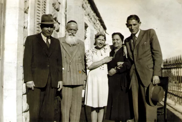 Ez a kép Jeruzsálemben készült 1948-ban, amikor a nagynénémék [anyja nővére, Szárá és a férje] ellátogattak Palesztinába. A kép jobb oldalán áll a bátyám, Lőb Herman, aki sokat volt velük ebben az időben. Mellette áll a nagynénénk, édesanyám testvére, Szárá. Őmellette egy asszonyka áll, akinek sajnos nem tudom a nevét, mellette viszont Goldenberg Móric bácsikánk, Szárá férje áll a gyönyörű nagy szakállával. A bal szélen pedig Elijáhu, anyuka egyik unokatestvére, akiről sajnos nem tudok semmit.