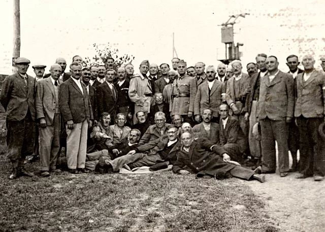 A képen apám látható, amikor elvitték őt munkaszolgálatra. Balról a negyedik a képen. Előtte áll Fochn Miksa, aki jó barátja volt apámnak.